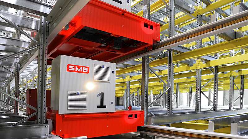 Fully automated, all goods are always at hand quickly – this is the result of our automated storage technology. The compact storage system developed by SMB is an automated system designed specifically for pallets. It is based on channels with multiple pallets being stored one behind the other in a row.
