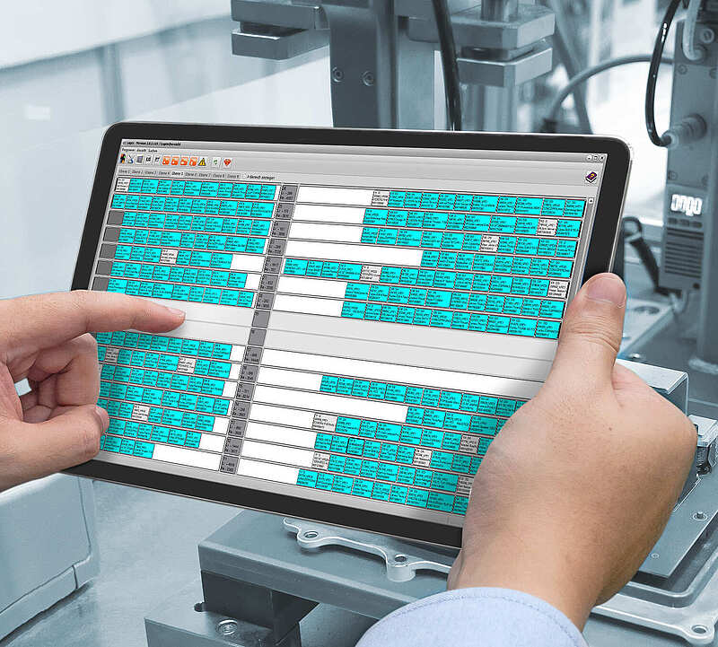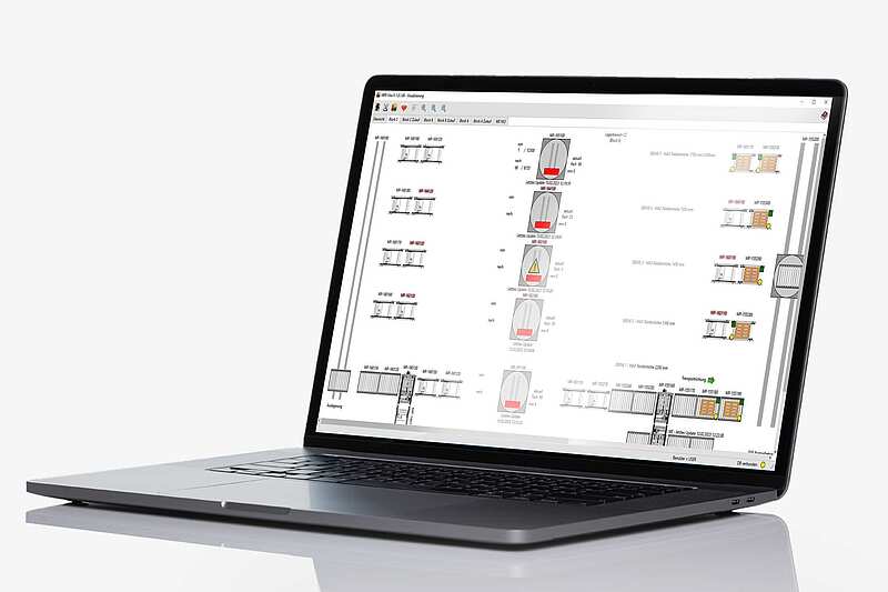 Supplied with data from your ERP system or your production planning and control system (PPC), our warehouse management system LVS/MFR communicates directly with the storage locations in the Automated Pallet Warehouse via interfaces. The software thus combines the digital control, organization and monitoring of all warehouse processes with the physical management of warehouse stocks by the programmable logic controller (PLC) of the Automated Pallet Warehouse. Our warehouse management system can be implemented in Oracle or mSQL and ensures optimum calculation times.